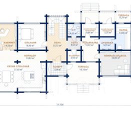 — Планировки: 2 этажа, 4 спальни, 4 санузла, кухня-столовая, отдельная гостиная, кабинет, сауна с комнатой отдыха, навес для автомобиля.