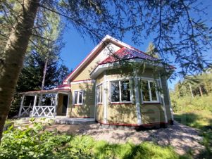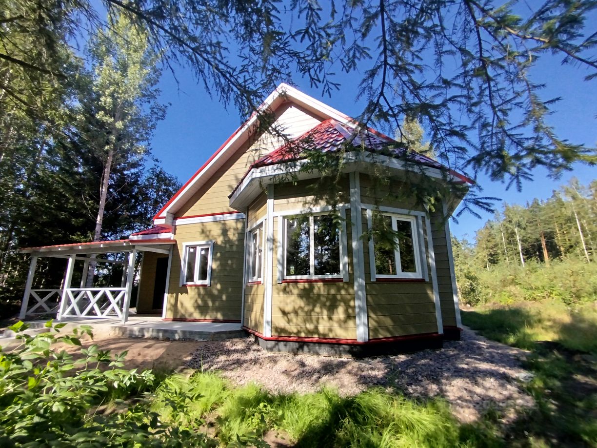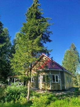 Участок угловой, крайний к лесу. В 15 минутах пешком есть красивое, в окружении сосен, озеро. До берега Ладожского озера 30 минут на машине.