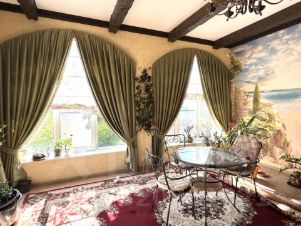 4) Летняя кухня - мангальная зона и кухня, витринные окна, подведена вода + бойлер