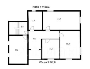 На 2-ом этаже 3 спальни, что позволяет каждому члену семьи чувствовать себя комфортно, не мешая при этом остальным, и кабинет-библиотека 24.7 кв м). Из одной из комнат (11.4 кв м) можно сделать 2-й санузел. Так же есть отдельная комната под спортзал (22.2 кв м). Практически вся мебель в доме остается новому собственнику.