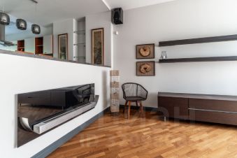 На втором этаже: огромная кухня-гостиная — 70 метров. Тут и биокамин, и французский балкон, и зона готовки, и барная стойка, и обеденная зона, и место для семейных вечеров или просмотра кино.