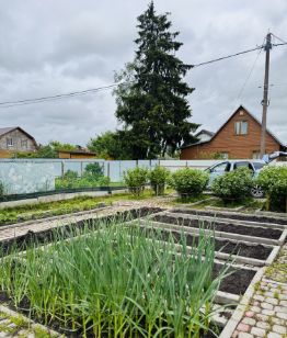 Участок в 11 соток огорожен заборов, два заезда с воротами для авто,парковочное место в плитке, дорожки и грядки также в тротуарной плитке,новый парник с посаженными овощами, два дровника -15 кубов.