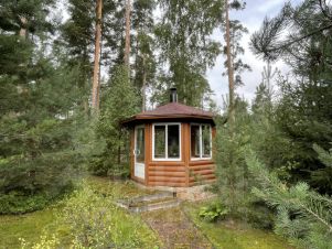 В глубине участка находится уютная беседка с грилем. Высажены плодовые деревья и кустарники.. участок сухой - сохранены черничные и брусничные полянки.