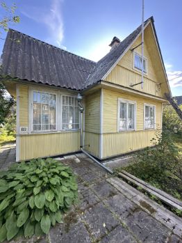 Дом деревянный, крепкий, в хорошем состоянии. На первом этаже 2 комнаты, на втором этаже три небольшие спаленки. Дом жилой.