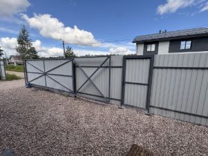 На территории участка находятся: дом с террасой , забор (с авто воротами) , можно припарковать до 4 машин.