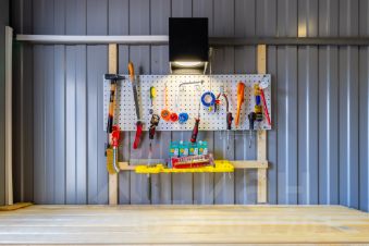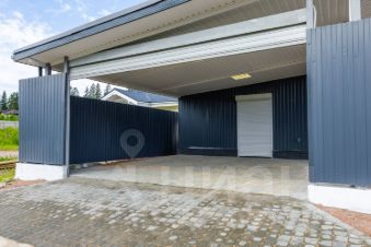 На участке крытая парковка на два автомобиля с подъемными воротами , просторный хозяйственный блок, мангал.