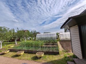 — Плодовый сад: яблони, груши, облепиха, чёрная, белая, красная смородина, крыжовник, ежевика, малина, виноград, сортовая клубника — всё ухожено и уже даёт урожай!