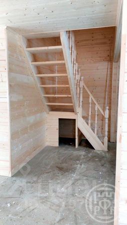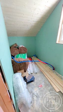 На первом этаже расположены объединенные кухня и гостиная, а также санузел с усиленными стенами под навесное оборудование. На втором этаже две комнаты и санузел. Крыша металлочерепица.