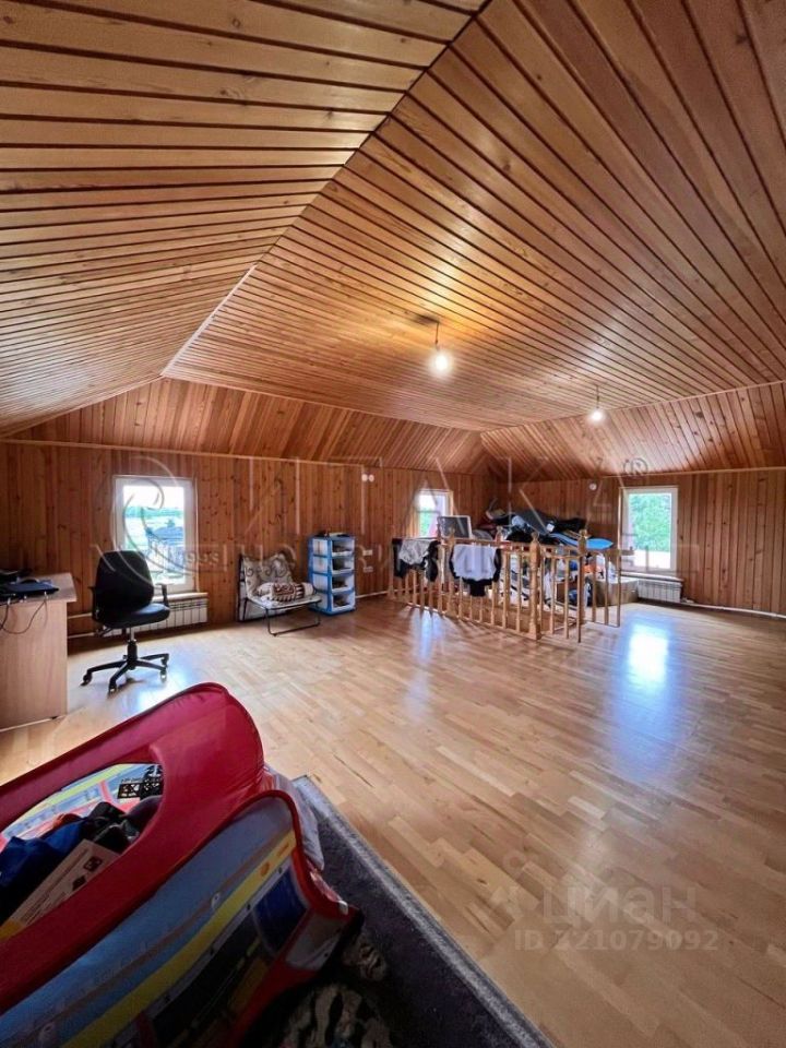 Второй этаж - мансардный, пол- ламинат , стены гипрок под покраску и обои, холл обшит вагонкой. Большой холл 47 кв.м и две изолированные спальные комнаты 19,6+19,9 кв.м.