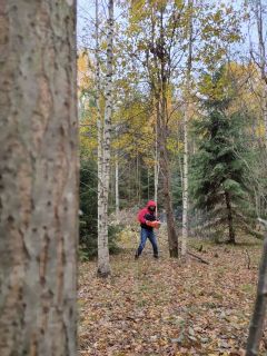 - участок ровный, много красивых деревьев(ель, сосна, береза). Всю ольху и лишние деревья убрали, есть вековая большая ель высокая-высокая, а также елка-пушистик, можно будет украшать под новый год.