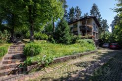 Коттедж трехуровневый, гармонично "вписан" в ландшафт участка с незначительным перепадом высот.