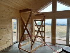 Дом полностью укомплектован всеми необходимыми коммуникациями: электричество, отопление, септик и скважина. Фундамент выполнен из надежных ж/б свай, стены из прочной сосны, а утепление в 200 мм гарантирует тепло и комфорт в любое время года. Теплые водяные полы и бетонная стяжка создают атмосферу уюта, а фасад, отделанный стильной скандинавской фасадной доской, придает дому современный и привлекательный вид.