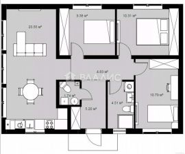 - Окна: Теплосберегающие двухкамерные стеклопакеты Rehau 70, цвет Антрацит. Гарантируют свет, тепло и тишину.