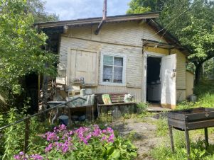 На участке отдельно расположена летняя кухня - дом. Внутри всё необходимое для приготовления пищи: чугунная топка, кухонный гарнитур, газовая плита, мойка. Газовый баллон снаружи в защитном шкафу. Есть бытовой отсек с дровами. Также есть баня (под снос).
