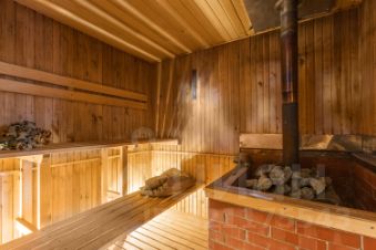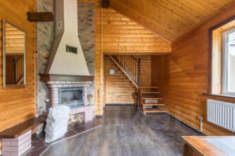 Два этажа, брус 150/150, отопление радиаторы и камин, отделка деревом.
