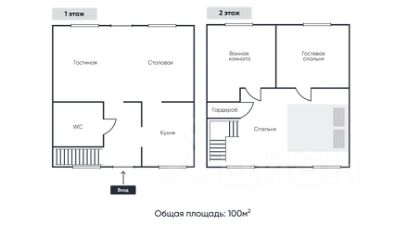 Второй этаж: 2 комнаты, санузел, гардеробная.