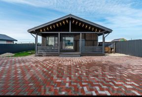 Кухня гостиная с панорамными окнами - 22,7 кв. м. Две спальни - 10 кв.м и 8,9 кв. м. между ними просторная гардеробная - 9 кв. м. Санузел раздельный, качественная и красивая плитка - керамогранит. В доме также есть техническое помещение под хоз. нужды и отдельно котельная.