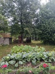 Участок обработан и ухожен, на нем много плодовых деревьев и кустарников, а также многолетние цветы.