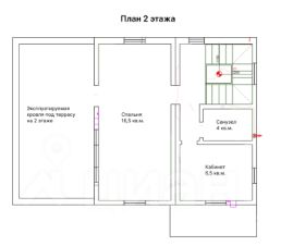 На втором этаже расположены спальня с выходом на эксплуатируемую кровлю- террасу с видом на лес, а так же кабинет и санузел с ванной.