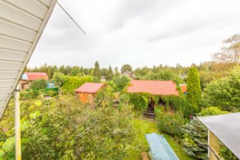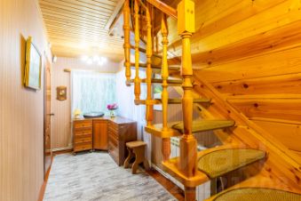 До Ладожского озера 10 минут, электричка из города 1ч. 10мин., через два дома лес, два раза в неделю приезжает магазин. Есть небольшой пруд с карасями и кувшинками.