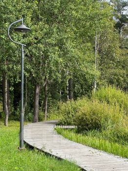 -В коттеджном поселке убраны все провода в почву, провода не создают визуального шума, установлены фонари, асфальтированная дорога, тротуары, полностью охраняемая территория с двумя КПП, имеется видеонаблюдение.