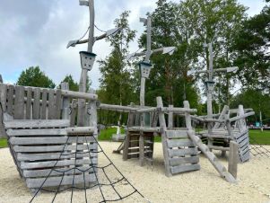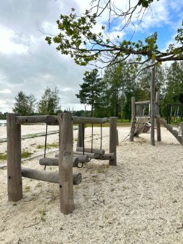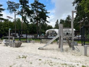Инфраструктура коттеджного поселка включает в себя прогулочную зону, пляж с раздевалками и душем, детские площадки, волейбольную площадку, лавочки и беседки для отдыха.