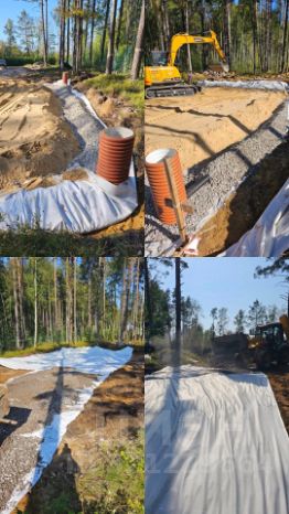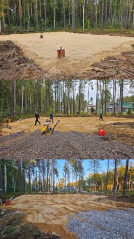 -Имеется дренаж участка, выполнена отсыпка 15 см и положен геотектиль, установлены смотровые колодцы. Все этапы работы запечатлены на фото.