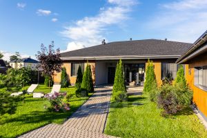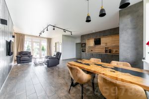 О ДОМЕ: Чудесный современный новый стильный одноэтажный дом 165.5 кв/м 2020 г.п. с кадастровым номером 47:07:1047003:1623. Построен по индивидуальному проекту из монолитного железобетона. В идеальном состоянии. В отделке использованы импортные эко - материалы. Мебель сделана по индивидуальному заказу. Кухня оборудована встроенной европейской техникой. Продуманная идеальная планировка, так как хозяин дома архитектор. Прихожая 5.6 кв/м с гардеробной 3.6 кв/м. Кухня - гостиная 41.4 кв/м и три мастер спальни, кабинет, 3 санузла. Спальня 1 - 24.4 кв/м с туалетной комнатой 4.4 кв/м. Спальня 2 - 12.8 кв/м с гардеробной 7.3 кв/м и туалетной комнатой 4.9 кв/м. Спальня 3 - 14.6 кв/м с гардеробной 7.8 кв/м и туалетной комнатой 5.2 кв/м и коридором 3.4 кв/м. Кабинет 12.4 кв/м. Хоз.блок 7.7 кв/м. Бойлерная 5.1 кв/м с отдельным выходом. Уютная терраса при входе в дом 16.6 кв/м.