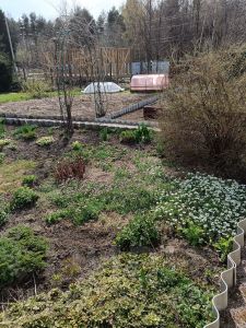 - На территории: плодовые деревья (яблони, груши); кусты смороды (белая, черная, красная); 3 куста жимолости (самая полезная ягода из всех); распахан огород под посадку картофеля, есть грядки и маленький парник; кусты можжевельника, цветник и клумбы.