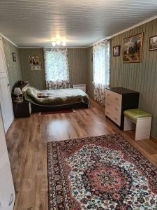 - Дом деревянный (примерные размеры 8 х 8 м2) с открытой верандой, брусово-щитовой, фундамент дома мощный, заливной бетонный. Дом полностью достроен и реконструирован в 2017 году: стены укреплены толстыми панелями ДВП; двойное утепление дома (внутри и снаружи); снаружи обшит сайдингом; индивидуальный проект. Можно проживать круглогодично, если подключить зимний водопровод проходит по границе участка (мы не делали, т.к. зимой не жили). Отопление электроконвекторы и уникальная кирпичная печь-камин (можно готовить пищу). Электричество - максим. мощность по договору 10,6 кВт, тип ввода трехфазный, электросчетчик-автомат на столбе (показания для оплаты приходят на эл.почту). Инженерные сети летний водопровод, разводка системы водоснабжения по дому (в кухне раковина, в душевой душ и умывальник), есть бойлер на 30 л. для горячей воды; отдельно есть разводка труб под стиралку и подачу воды в унитаз для смыва (не ставили, т.к. не было необходимости). Трубы канализации под домом и выведены под землёй в пожарный водоем. В доме установлены стеклопакеты с москитными сетками, свежий ремонт полы деревянные, стены и потолок обшиты вагонкой (покрашена); есть встроенный гараж на 0 этаже (используем как помещение для хранения); большая кухня-гостиная на 1 этаже с мебелью и техникой и раскладным диваном; спальня со спальным гарнитуром на 2 этаже; есть кровать и спальные места на 3 этаже под крышей, там же много места для хранения вещей. Вся мебель и техника в доме куплена в 2017 году, старья нет! Есть подпол для хранения заготовок на зиму (не промерзает зимой, всегда положит. температура).