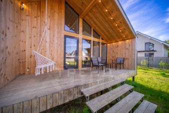 - Плoщадь каждого дома 60 м2 из них 54м2 (жилая) и 6м2 терраса с садовой мебелью.