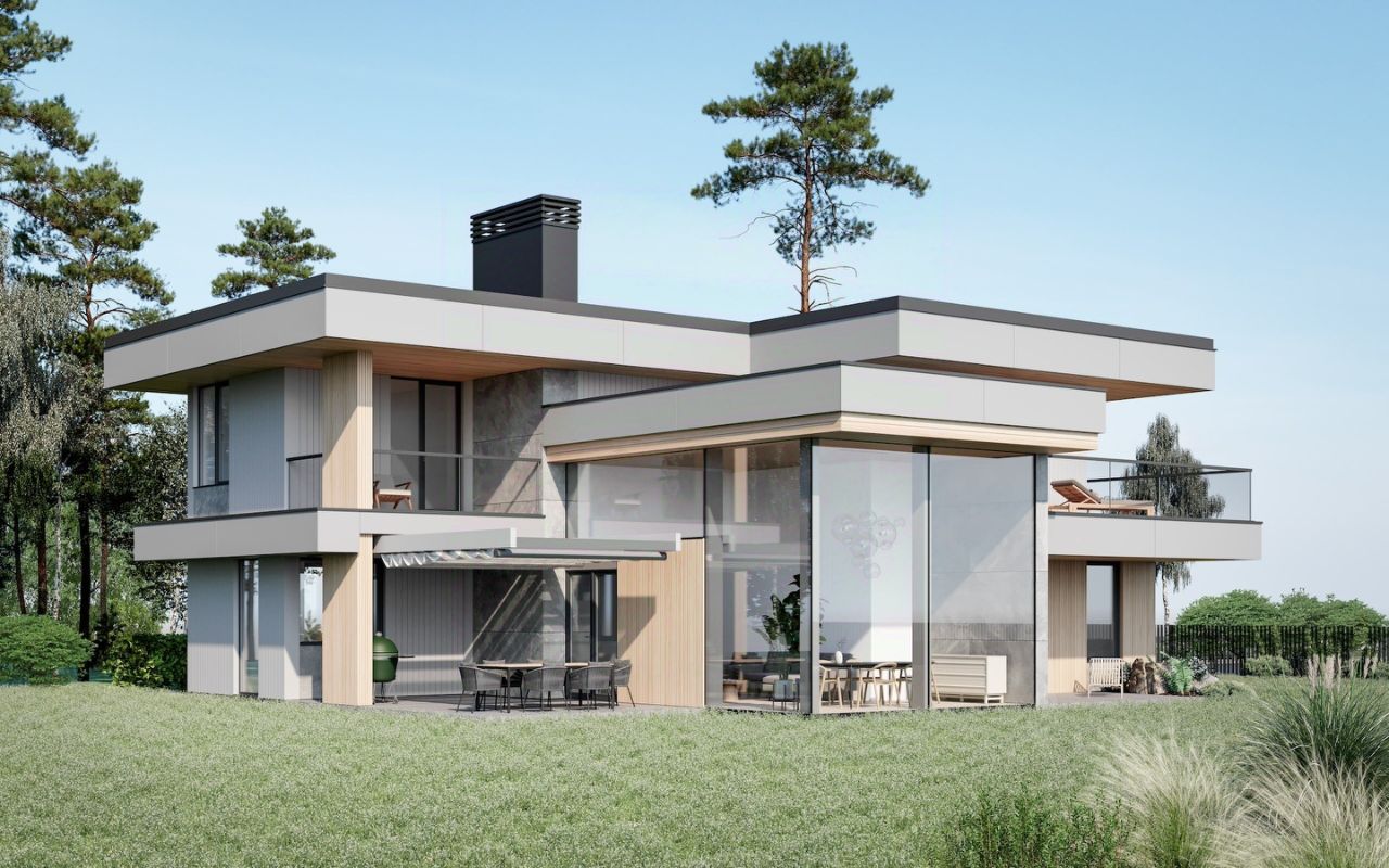 Двухэтажный коттедж Villa Alexandra площадью 317 м² в стиле хaй-тек в коттеджном посёлке бизнec-клacса Villа Оivalа. Главной особенностью дома является свободная планировка.