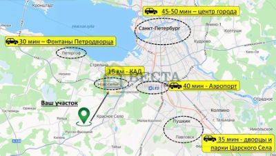 Выгодное транспортное сообщение - рядом находится г. Красное Село, в окружении 30 минут езды на автомобиле - достопримечательности жемчужин пригорода Санкт-Петербурга - Петергоф, с фонтанами, дворцы и парки Стрельны, Пушкина и Павловска, г. Гатчины.