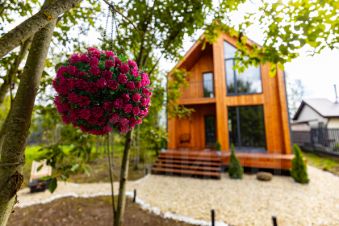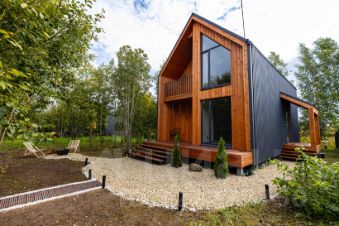 - Отделка фасадов выполнена из сухой строганной скандинавской доски.