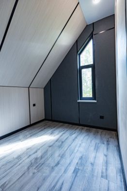 - Внутренняя отделка выполнена из "парящих" ЗД панелей изготовленых под заказ дома.
