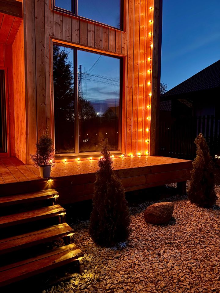 - Оформлено оригинальное декоративное освещение помещений и участка.