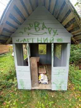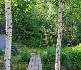 Хоз. блок. Уличный торфяной туалет. Детский спортивный комплекс.
