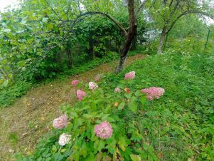 Участок разработан. Много плодовых деревьев, кустарников и цветов. 2 парника.