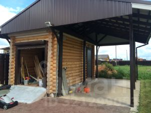 Хозяйственный блок (бревно 22 см) с вместительным погребом и навесом для автомобиля представляет собой удобное место для хранения инвентаря и техники.