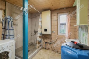 На первом этаже, тамбур с гардеробной, холл, отдельный туалет, душевая (установлена стиральная машина, зимой вода из колодца), комната и кухня-гостиная. В гостиной установлена печь-камин. Сделан ремонт, имеется необходимая мебель, кухонный гарнитур и техника.