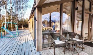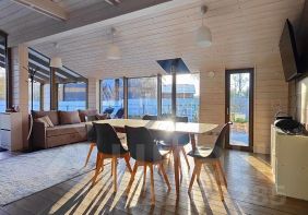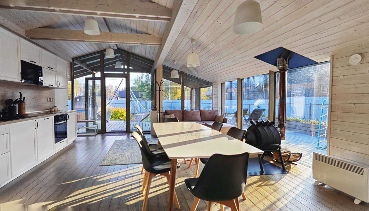 Его эстетика влюбляет в себя с первого взгляда. Чистые линии, простые формы и натуральные материалы формируют современное пространство, наполненное светом и воздухом. Панорамное остекление растворяет границы между интерьером и природой, превращая пейзаж в живую часть дома. Тепло натурального дерева и уютный треск в камине наполняют вечера в кругу близких особой гармонией. А жаркая баня с купелью под открытым небом подарит вам личную зону релакса, где можно полностью восстановить силы.