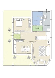 - гостиная комната с камином, может выполнять функции резервного источника тепла,