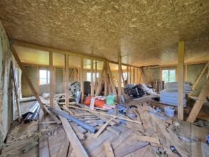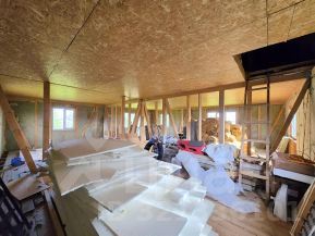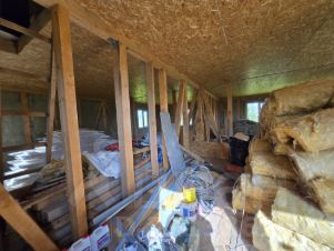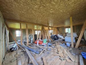 Для дома закуплены все материалы: металлопластиковые окна, межкомнатные двери, двери откатные, водостоки, ливнёвки, лестница на 2 этаж с болясинами, доп. Туалет, душевая кабина, утеплители, доски и т.д.