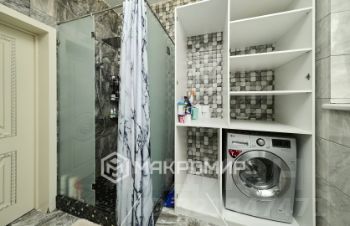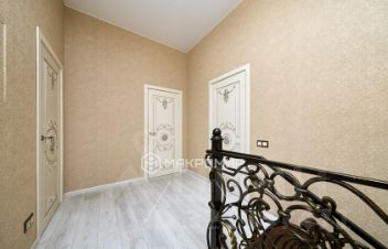 На первом этаже — гостиная 20 м2, совмещенная с кухней-столовой 17м2, гостевая комната 15м2, гардеробная и большой санузел с душевой кабиной. Кухня оборудована техникой фирмы Kuppersberg. На втором — три спальни площадью 17м2, 15м2 и 14м2 и огромная ванная 16м2. Высокие потолки (1-й этаж 2,7 м, второй до 3м), тёплые полы (первый этаж и ванная комната на 2-м), простор и свет — всё создано для комфорта семьи. Инженерные системы полностью подключены: газ (газовый котел Arderia), артезианская скважина, электричество 15 кВт, автономная канализация. Дом строился для себя, из качественных материалов, и готов подарить новым хозяевам уют и спокойствие.