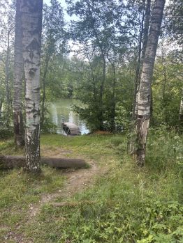 Земельный участок просторный, утопает в зелени и граничит с лесом (есть собственный выход в лес). На участке многолетние деревья (березы, сосны, ели, дуб), кустарники, черника и грибы. Есть летняя кухня, хоз. постройки и зона барбекю. Строения на участке расположены так, что при желании есть возможность построить себе целый дворец и даже больше