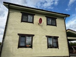 Дом построен из Бруса (20 см) на забивных сваях, (прошел процес усадки), утеплен пол и кровля (роквул 20 см)