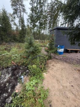 Отличный участок в окружении леса. На участке проведены работы: подключено электричество, устроен вывод воды на участок, организован заезд, парковка, спилены старые деревья.