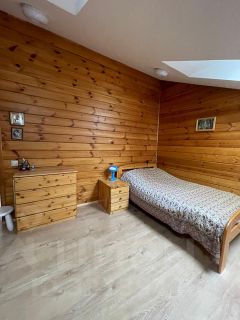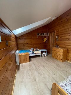 3 спальни, 1 санузел с ванной и кладовка. На первом этаже: