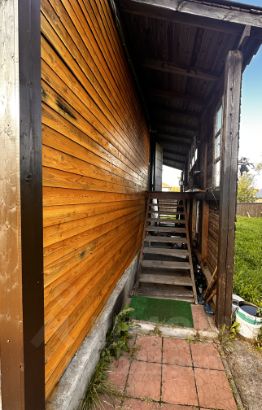 В сам дом ведет высокая, крытая лестница, можно превратить в отличную веранду, с видом на собственный сад.