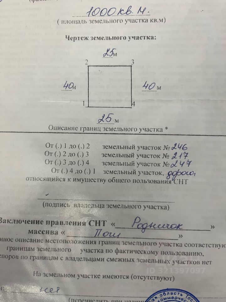 Лен. Обл. , Тосно, Массив "Поги", СНТ "Родничок", земельный участок 246А.